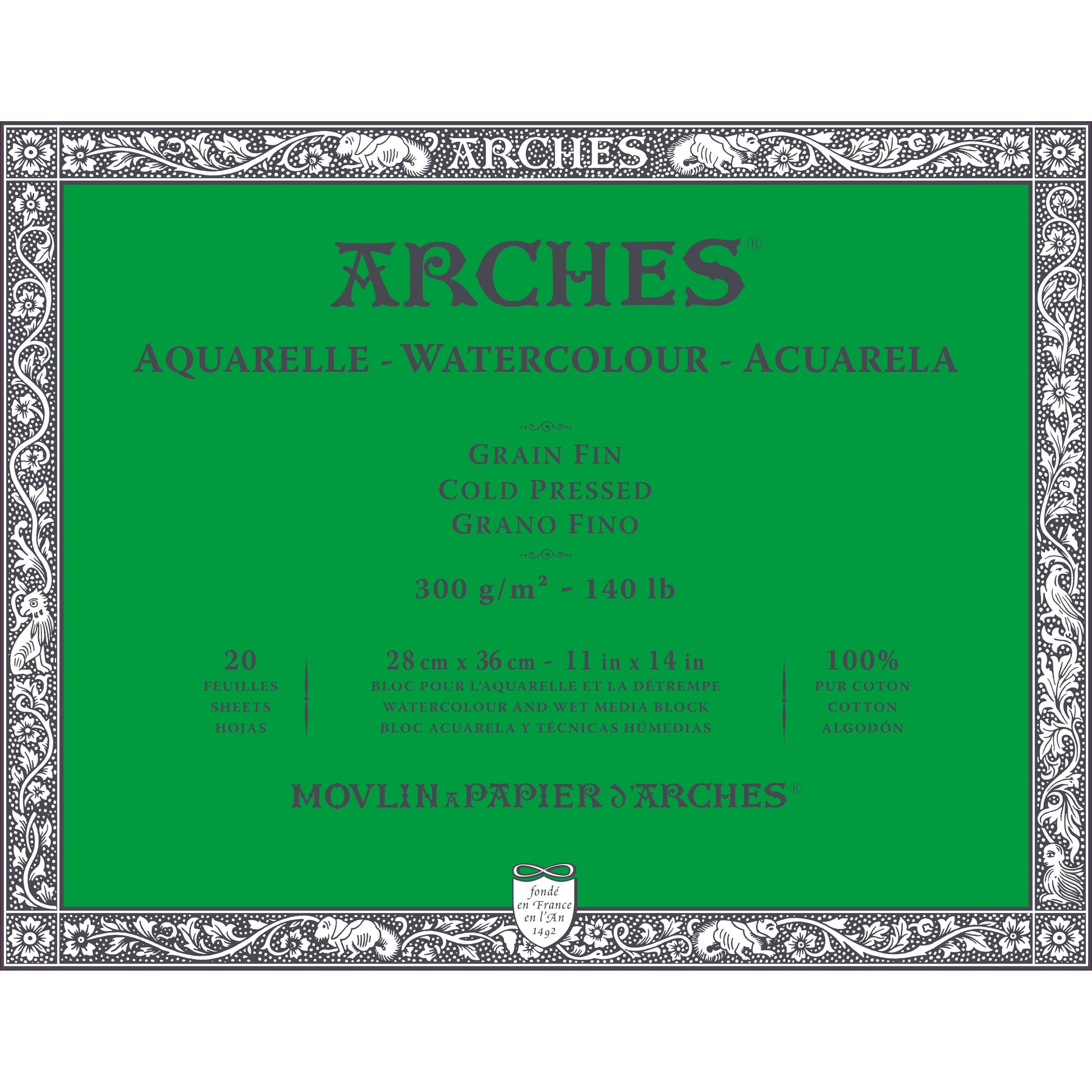 Premium molded paper from Arjomari Mills of France . Made from 100% rag, these 140 lb. blocks offer a convenient variety of sizes and surfaces that are ideal for field work.