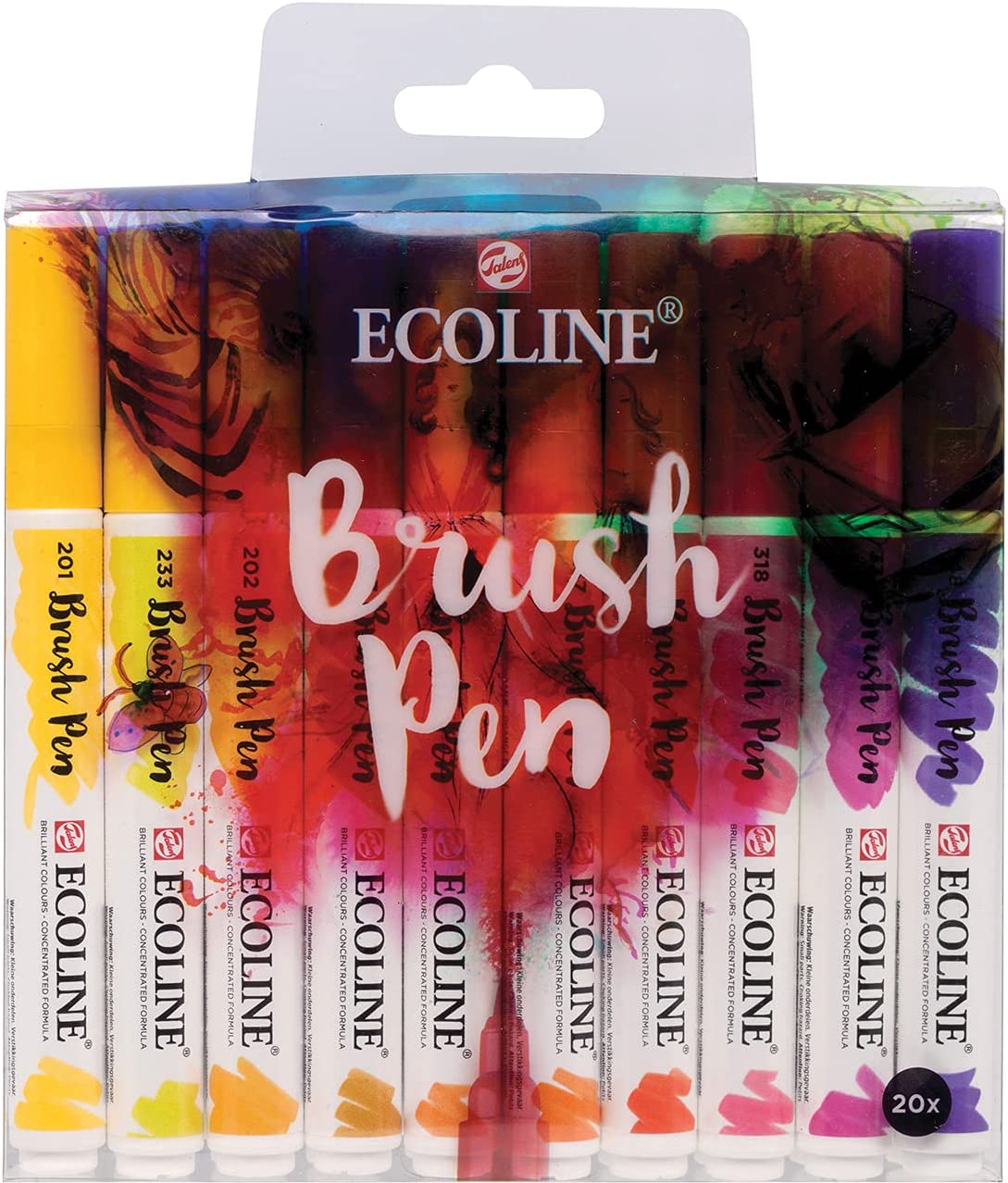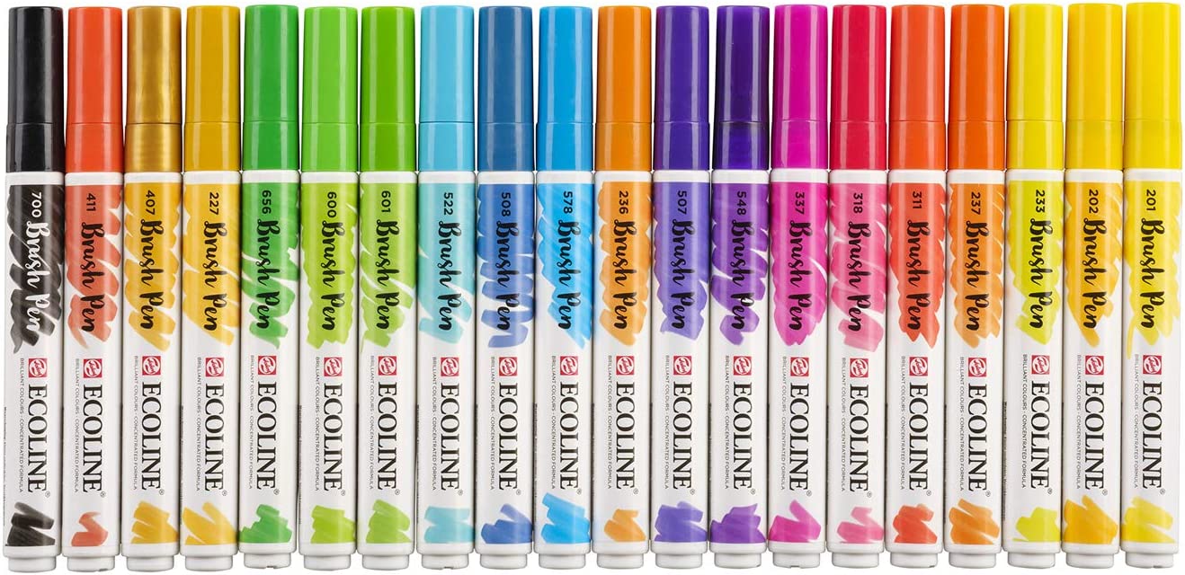 These sets feature markers with brilliant, water-soluble ink that are reusable once dry. The markers feature a liquid watercolor based on high-intensity saturated dyes that dries in minutes, is rewettable, and blendable. They produce excellent results on paper or cardboard.