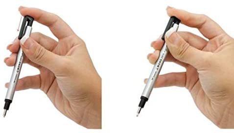 Protect artwork and erase in detail with these high-quality, precision erasers in a pen-style holder. The erasers won't damage paper. The eraser advances by clicking on the other end of the pen-style holder. The holder includes a convenient clip for on-the-go erasing. The round eraser has a diameter of 2.3 mm.