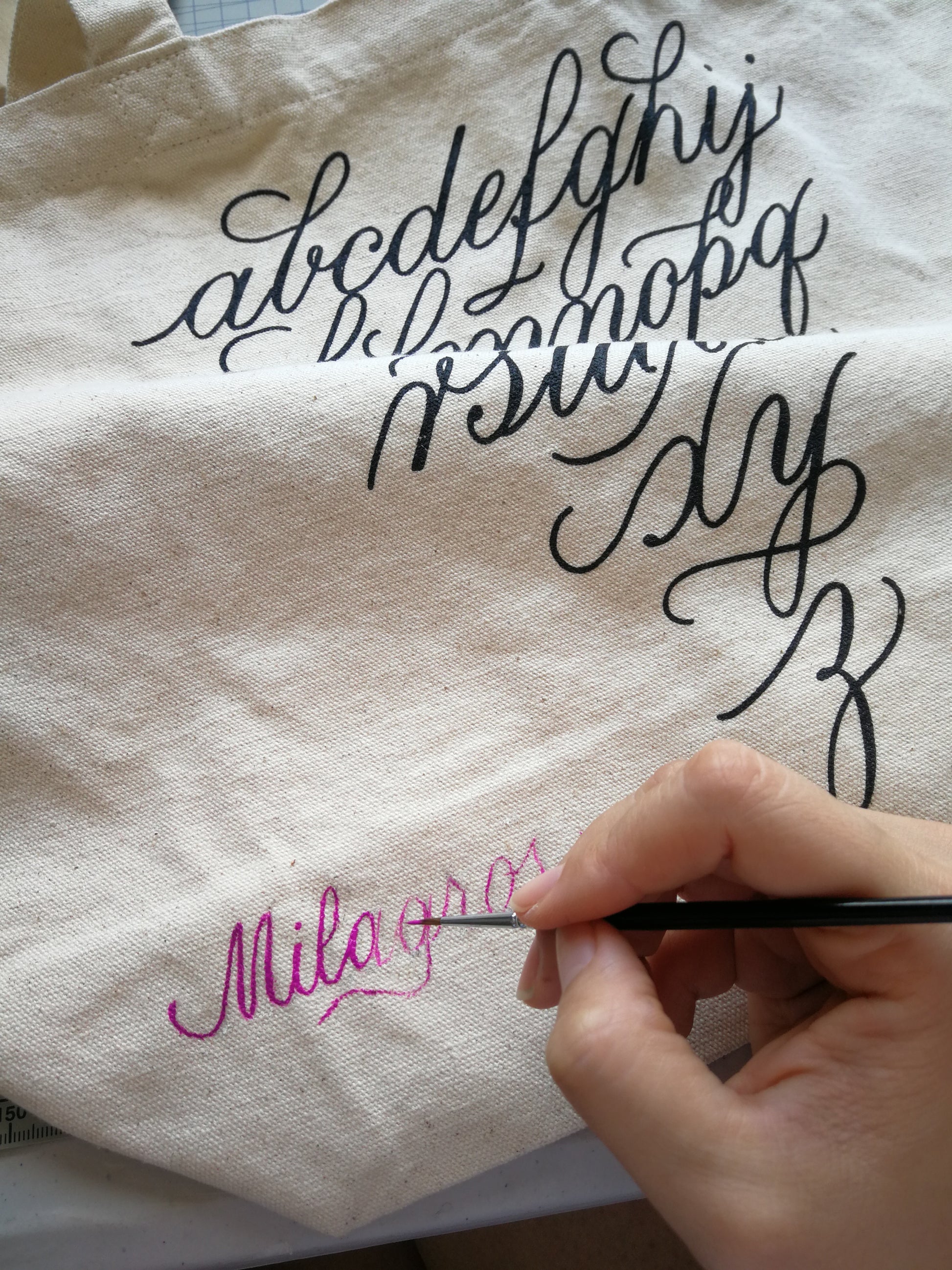 Personalization goes on the left side of the bag.