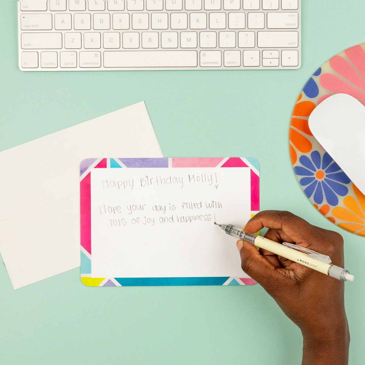 Limited Edition set with matching MONO Graph Mechanical Pencil and MONO Eraser. The MONO Graph Mechanical Pencil features an innovative shake-mechanism that allows the user to extend the lead by simply shaking the pencil. The pencil's clip is equipped with a shake lock that prevents accidental lead extension. 4mm long fixed guide pipe prevents the lead from breaking and enables users to draw and write firmly, stably, and comfortably. Features one of Japan's most popular erasers, the MONO Eraser, fully retractable with twist action. Refillable lead and eraser. 0.5mm HB lead.