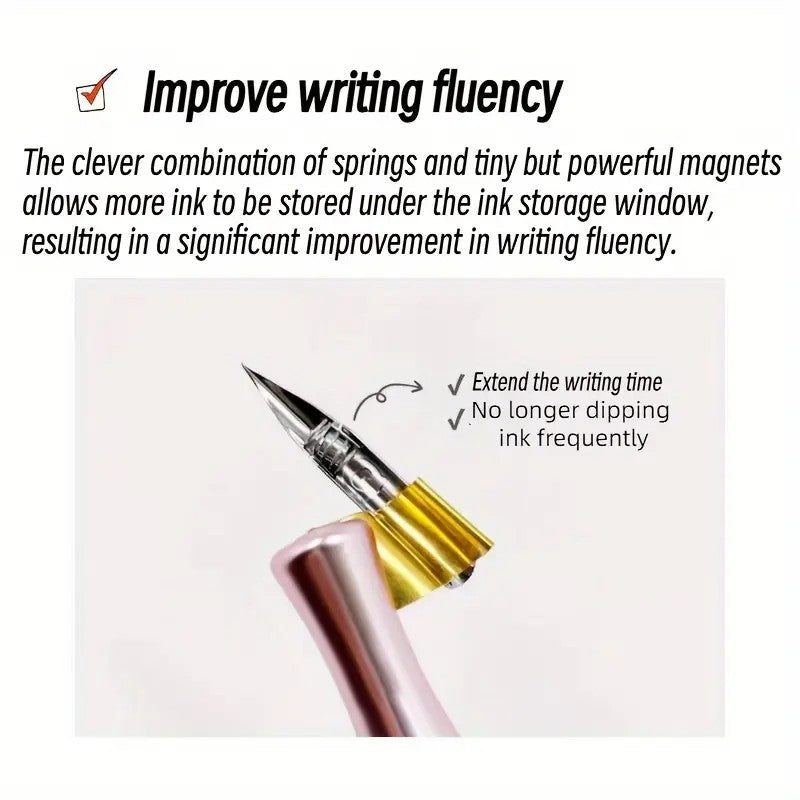 El depósito de tinta es compatible con tamaños comunes de puntas de plumillas sumergidas, como Hunt 101, EP Principals, Blue Pumpkin, Nikko G y otras.