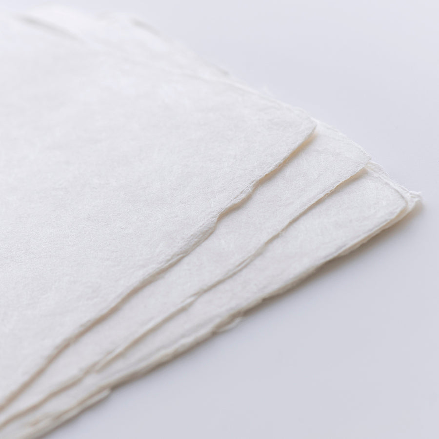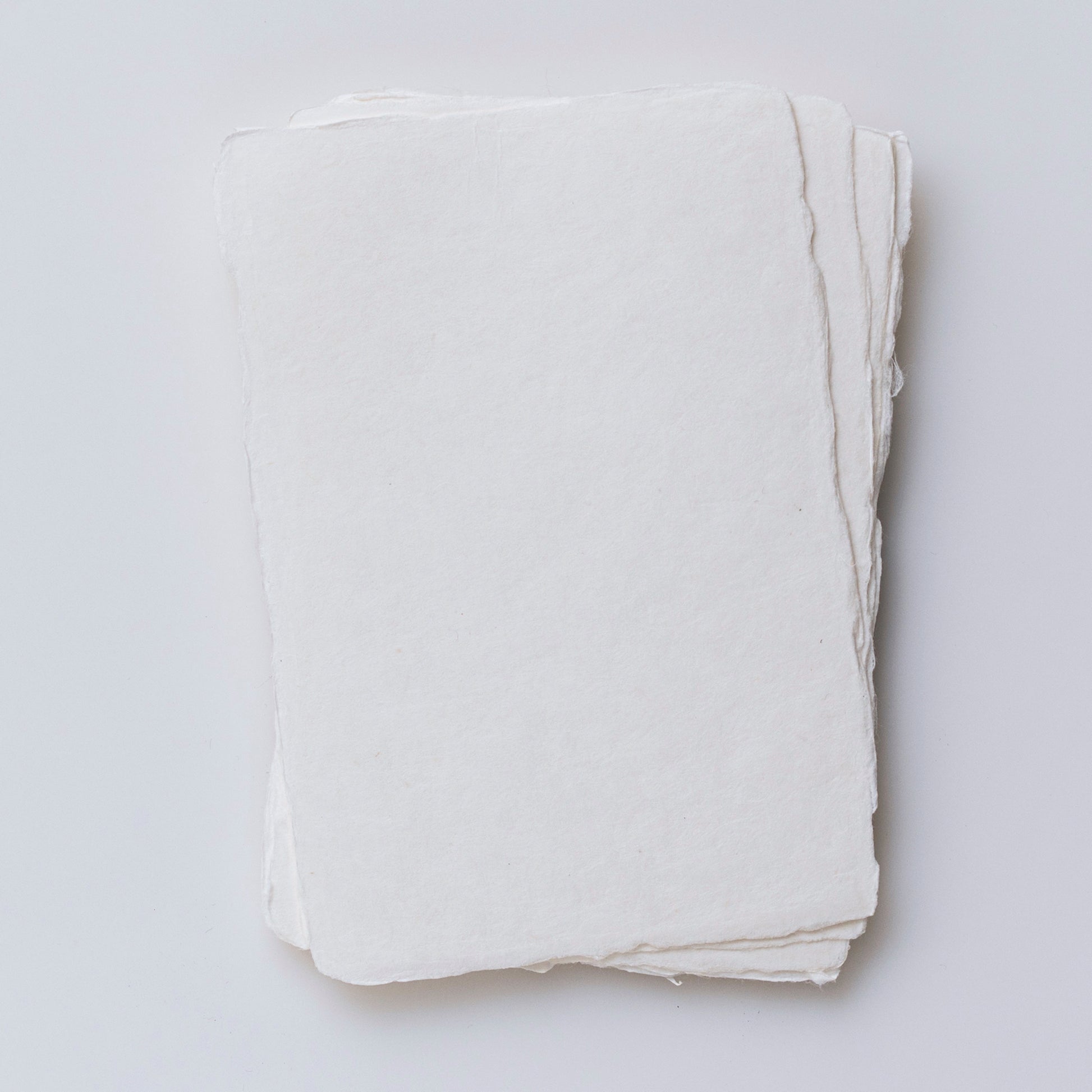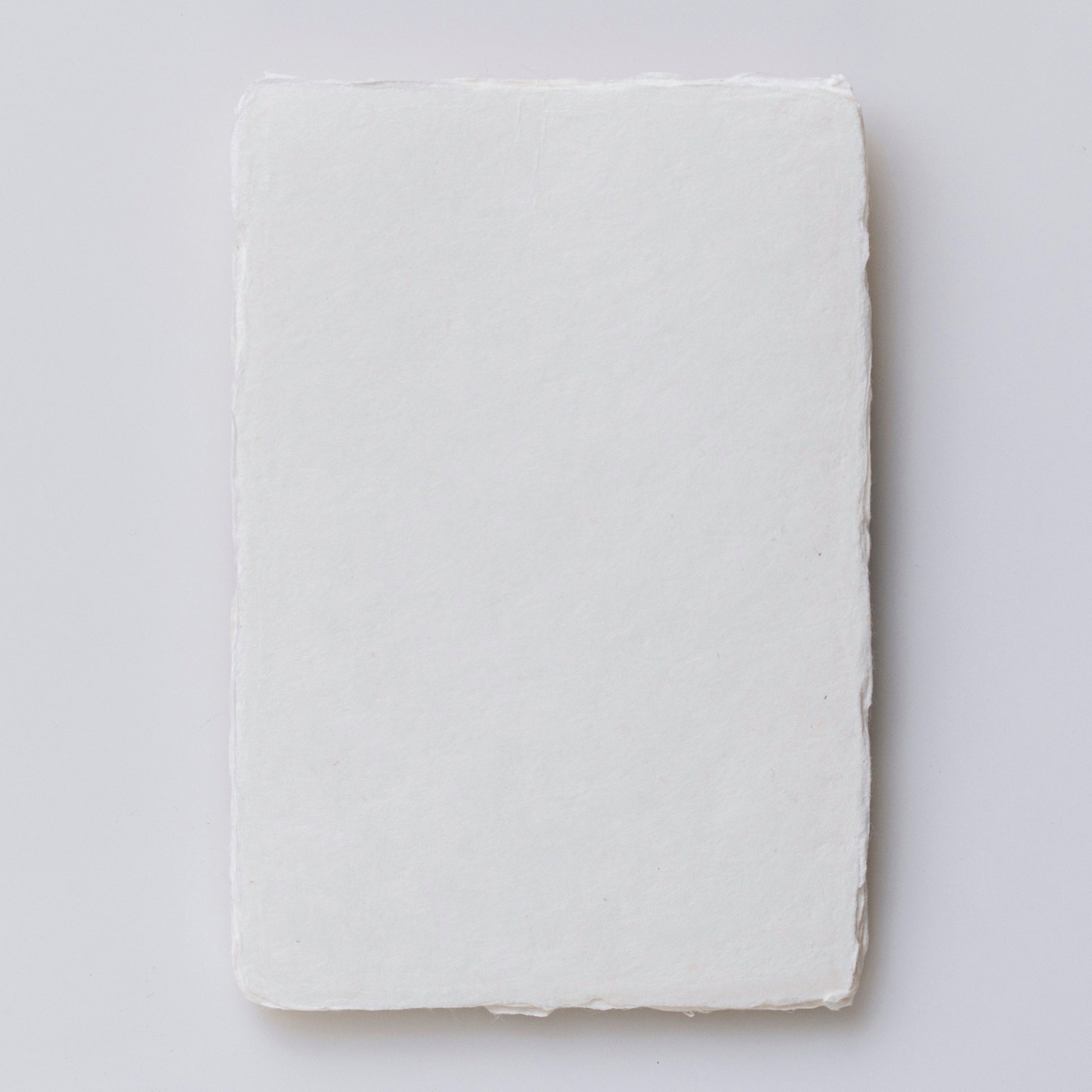 Extra-thick 200gsm handmade white cards with four organic deckled edges. Each card features a smooth backside and slightly textured front.