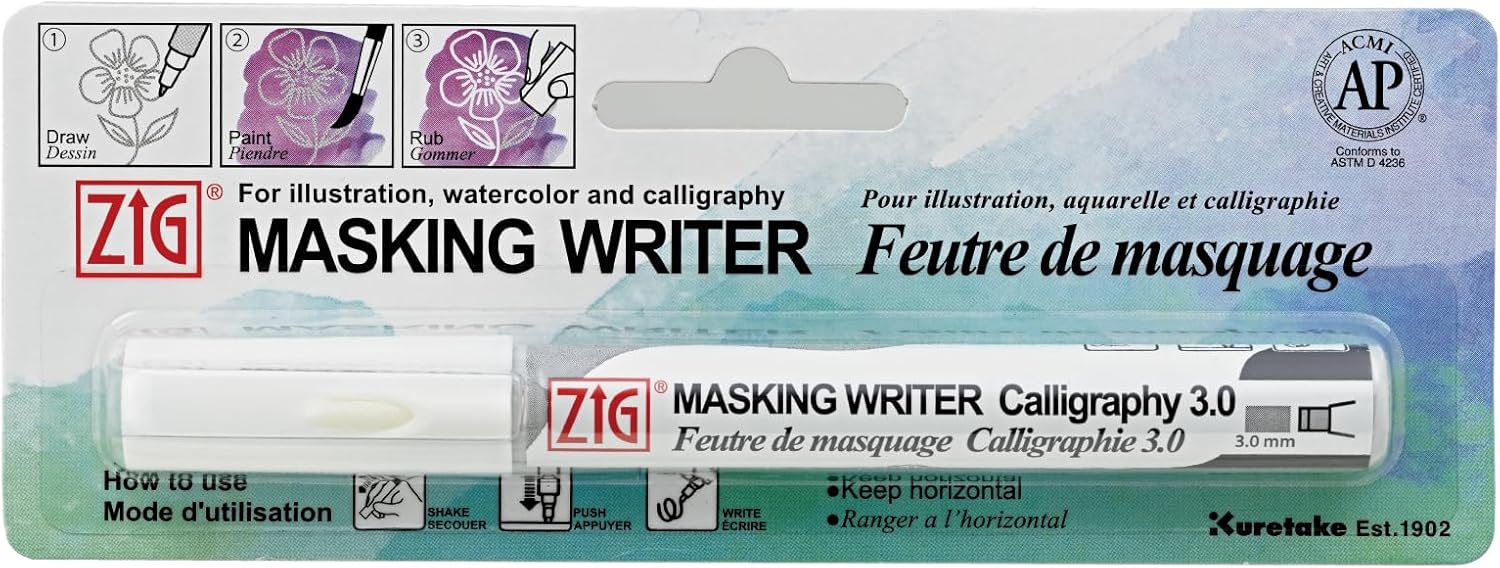 El rotulador Zig Calligraphy Masking Writer combina la eficacia del líquido enmascarador con la facilidad de uso de un bolígrafo caligráfico.