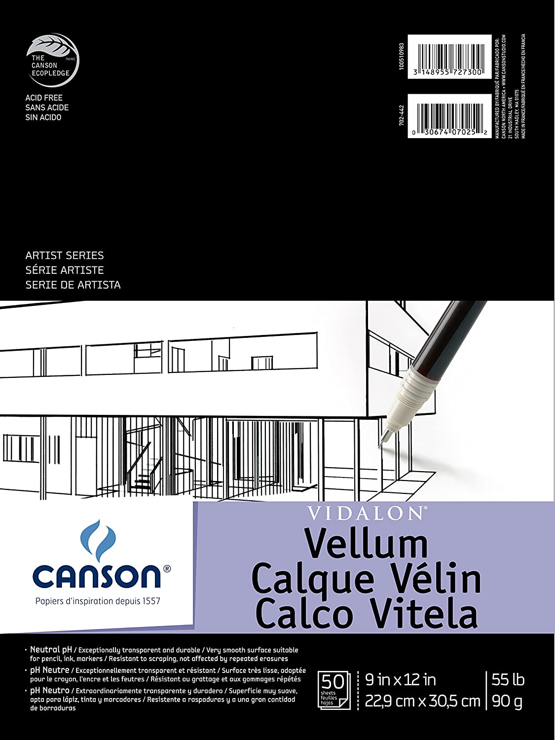 CANSON - Artist Series Vidalon Vellum Tracing Papers (Libreta de Hoja de Calco Vidalon Vellum) - 18lb - 50 hojas