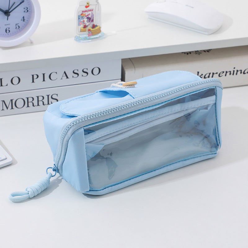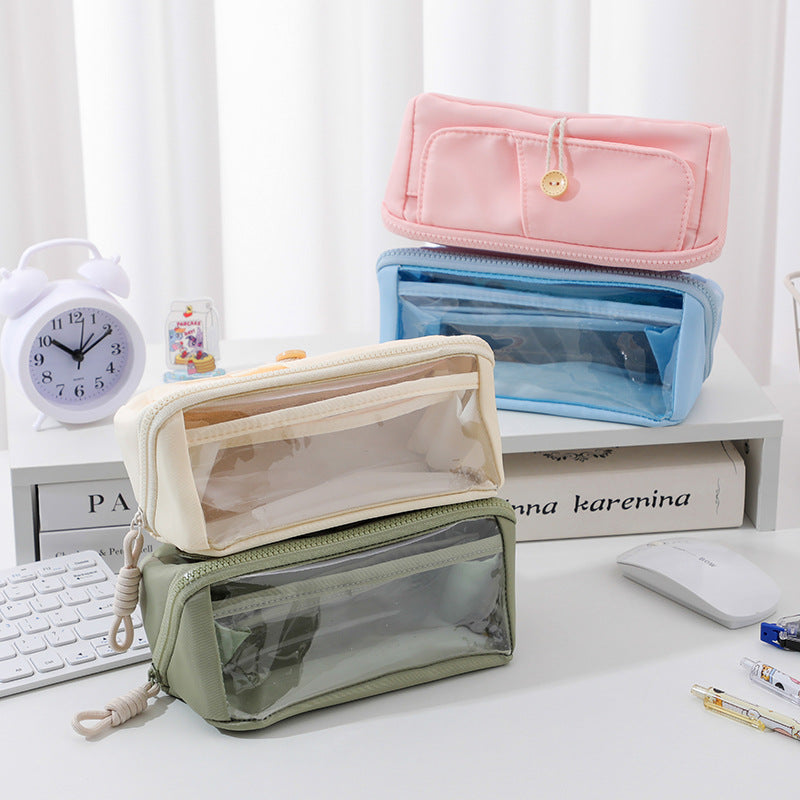 Cartucheras grande transparente y multifucional para almacenar tus lápices, plumones y más accesorios.