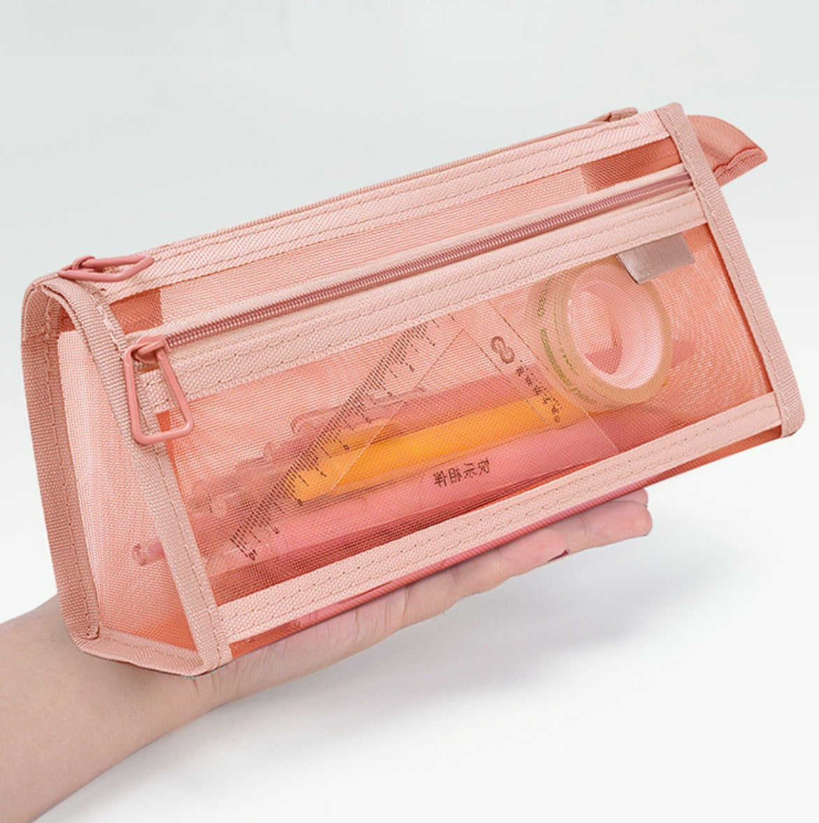 Cartucheras transparente de malla para almacenar tus lápices, plumones y más accesorios.