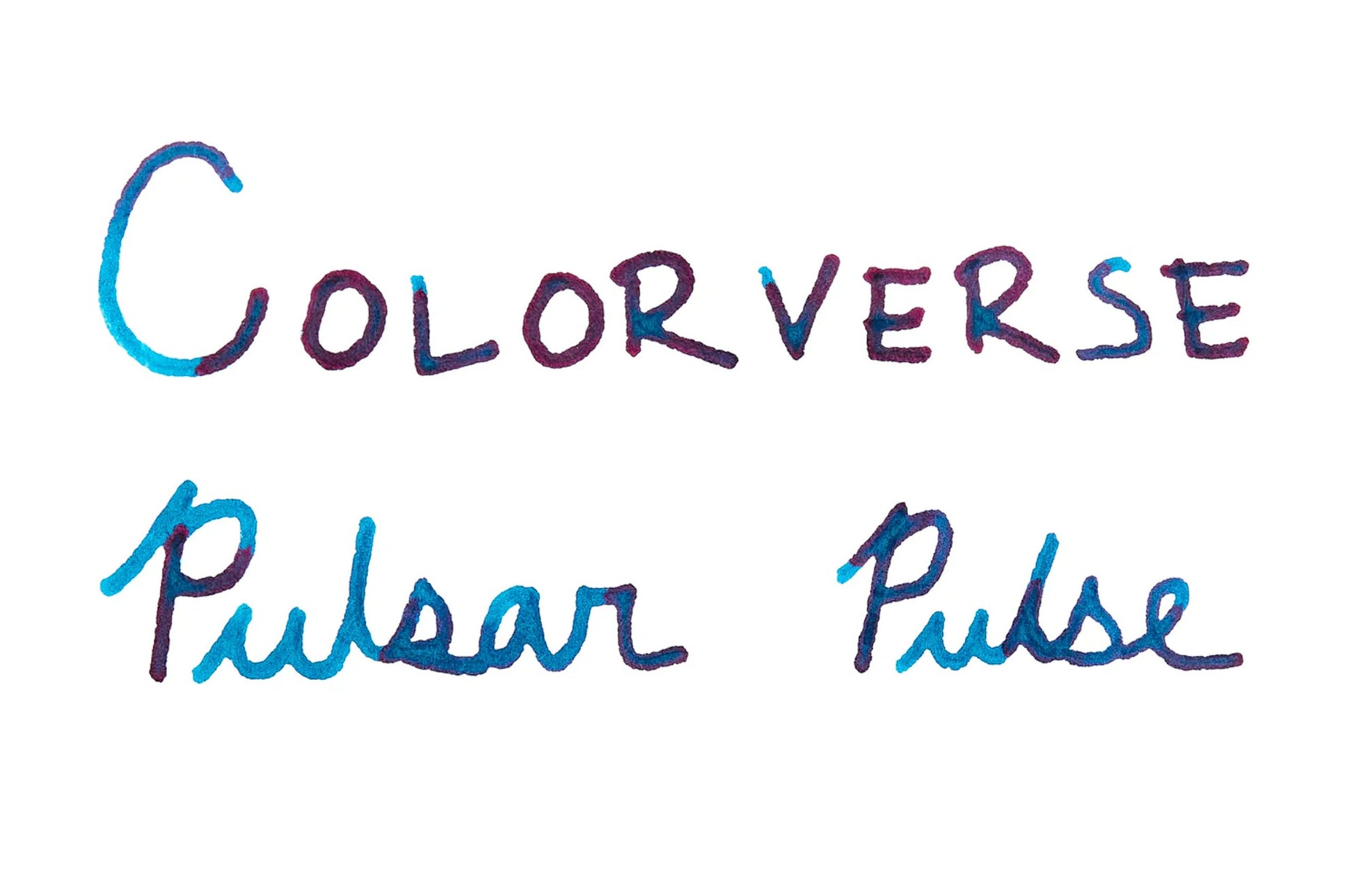 Este frasco de vidrio de 65 ml de tinta para pluma estilográfica Colorverse Pulsar Pulse azul forma parte del lanzamiento de las 3 mejores tintas del calendario Colorverse 2024.