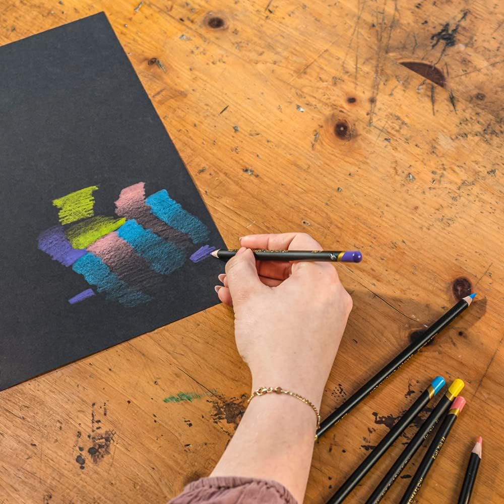 Los lápices de colores Chromaflow están formulados con ricos pigmentos para ofrecer una aplicación audaz y vibrante. Estos fuertes lápices cuentan con un núcleo de primera calidad que soporta la presión al afilarlos y usarlos.