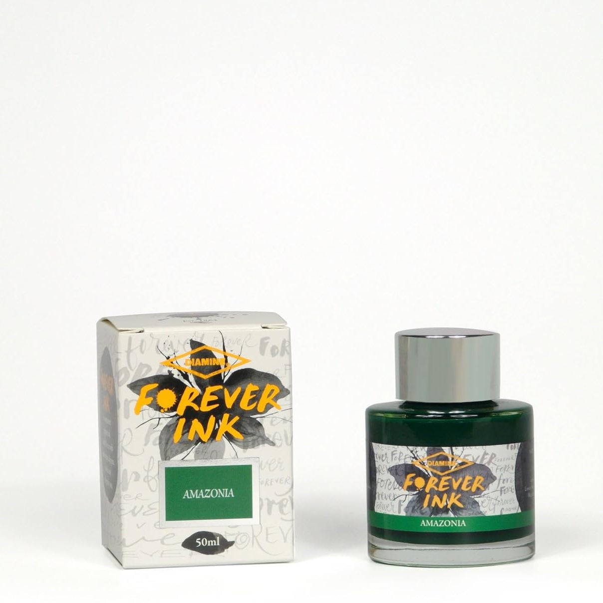 Esta tinta para pluma estilográfica Diamine Forever Amazonia viene en un frasco de vidrio de 50 ml.
