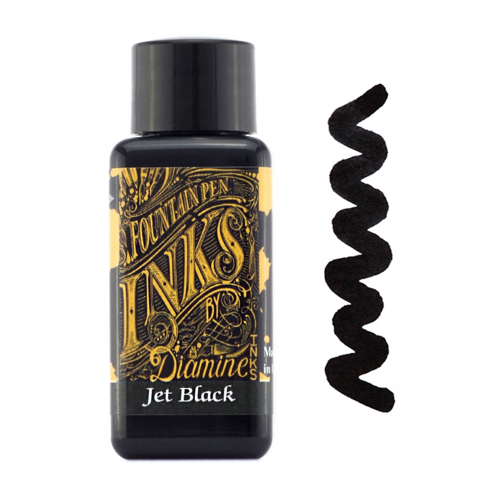 Diamine Jet Black es una tinta negra estándar para pluma estilográfica con sombreado bajo. Se seca en 40 segundos con una punta mediana sobre Rhodia y tiene un flujo promedio. La tinta Diamine se fabrica en Inglaterra desde 1864.