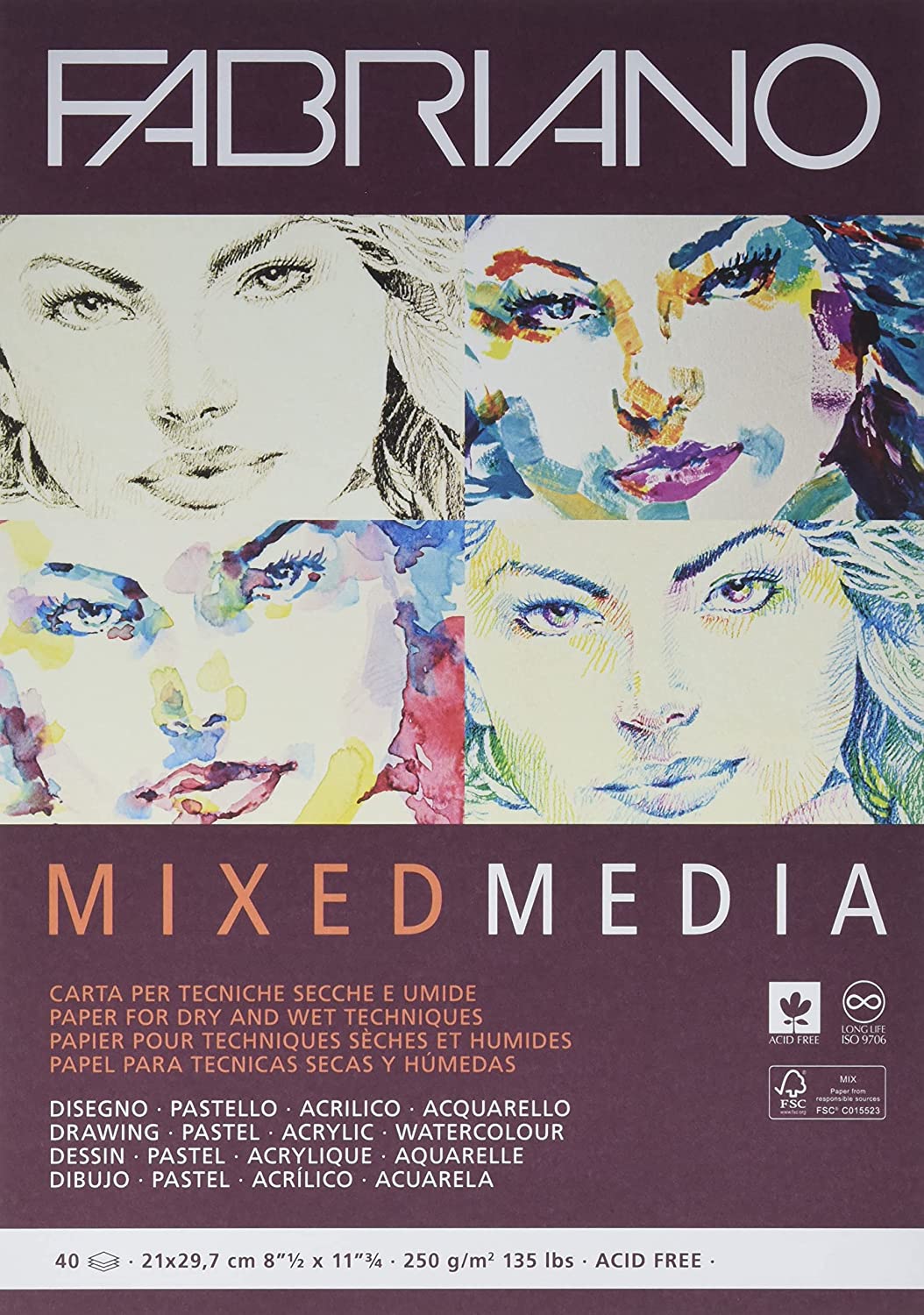 Los blocs Fabriano Mixed Media son un producto versátil y polivalente que combina las características de los papeles de acuarela y acrílico con las de los papeles de dibujo.