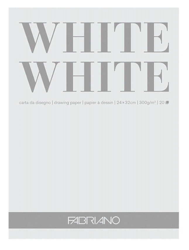 Las libretas Fabriano WHITE WHITE están disponibles en una libreta con una cubierta elegante e impresión tono sobre tono bruñida.