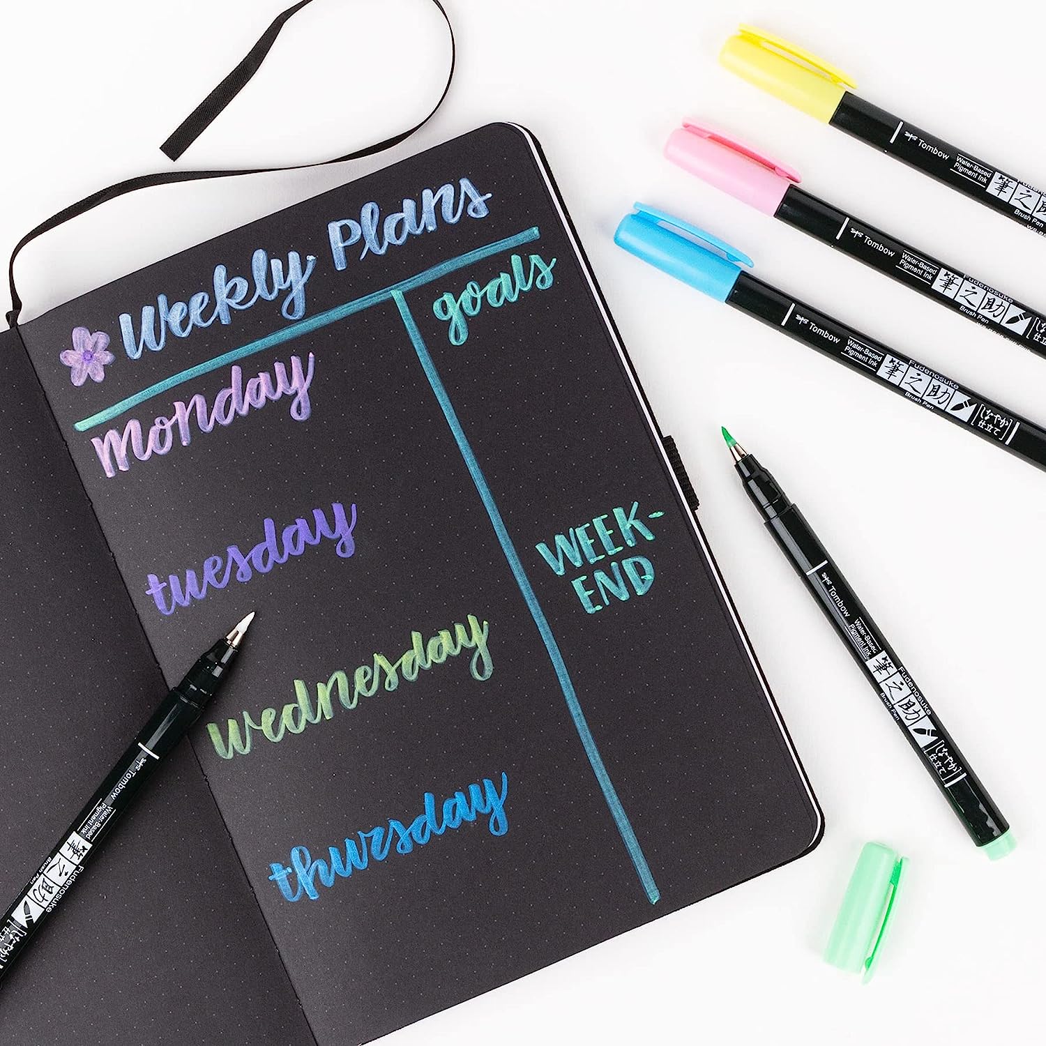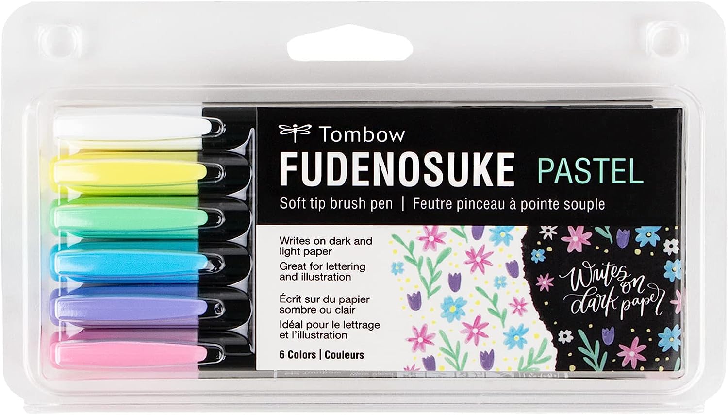 Create colorful beginner brush calligraphy, hand lettering, and illustrations with Tombow Fudenosuke Colors Brush Pens. Includes 6 firm yet flexible brush pens in an assortment of vibrant colors.