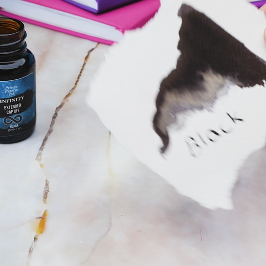 La tinta Private Reserve Infinity Black ofrece un negro clásico y atemporal que realza la elegancia de cualquier escritura. Elaborada con materiales de calidad para una saturación de color uniforme y un rendimiento confiable, resiste la decoloración y el plumaje.