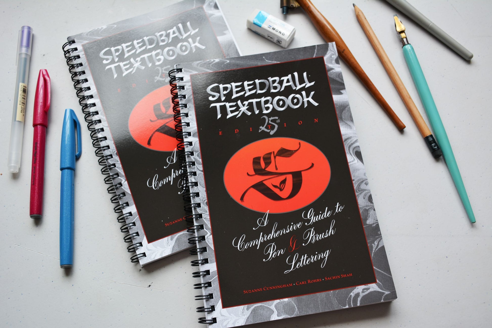 Presentada en una conveniente construcción plana, la 25a edición de The Speedball Textbook presenta 120 páginas de ejemplares, trabajos de colaboradores y conocimientos técnicos innovadores que seguramente inspirarán y atraerán a los escribas y entusiastas de todo el espectro de habilidades y experiencia.