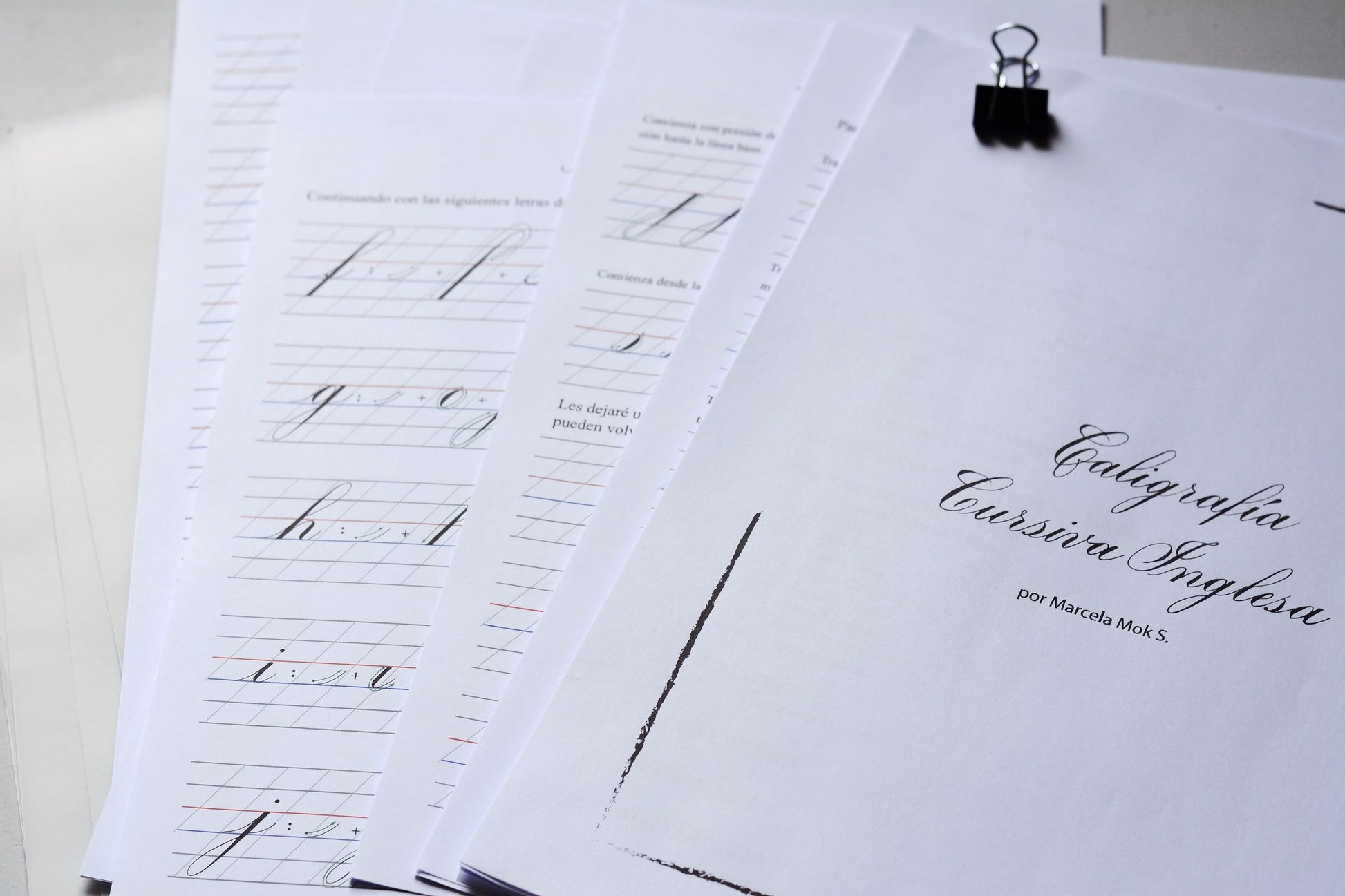 Manual de Cursiva Inglesa (8.5″ x 11″) versión Impresa: Un total de 29 páginas, la cual incluye informaciones, trazos fundamentales, el abecedario en minúsculas, ejercicios de prácticas, hoja de guía, la página de presentación y hojas vírgenes o de calcar.