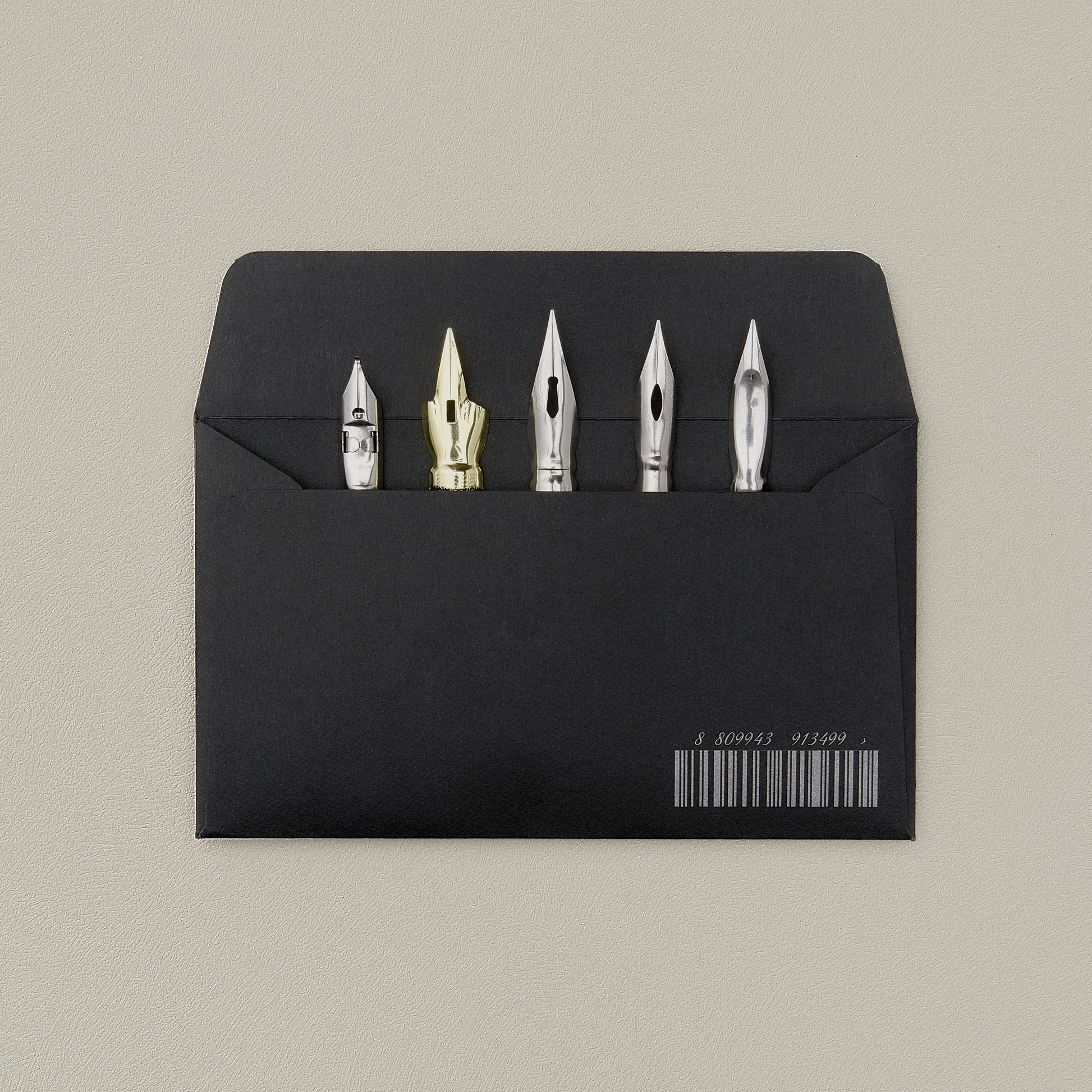 Un juego de puntas diseñado para principiantes que lo usan con facilidad. Incluso si aún no está familiarizado con el uso de una pluma de inmersión, puede probar varias puntas con diferentes grosores de trazo y flexibilidades para encontrar la que mejor se adapte a su estilo de escritura. Estas puntas son compatibles con los portaplumas estándar, lo que le permite combinarlas libremente para una mayor versatilidad. El juego incluye cinco puntas diferentes que ofrecen una variedad de experiencias, desde las que muestran una variación significativa del trazo según la presión hasta las que tienen una variación mínima, así como puntas más firmes y más suaves.