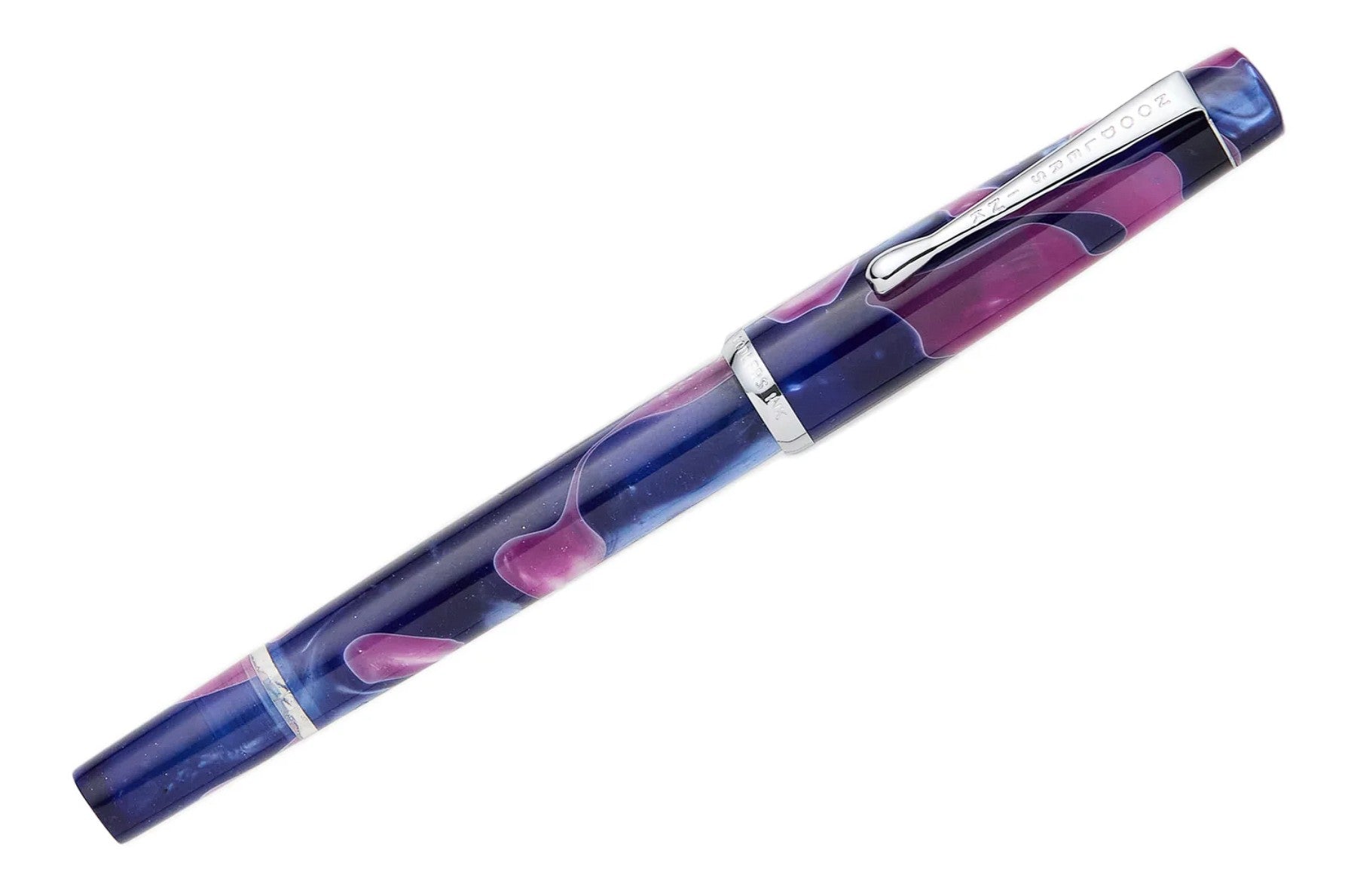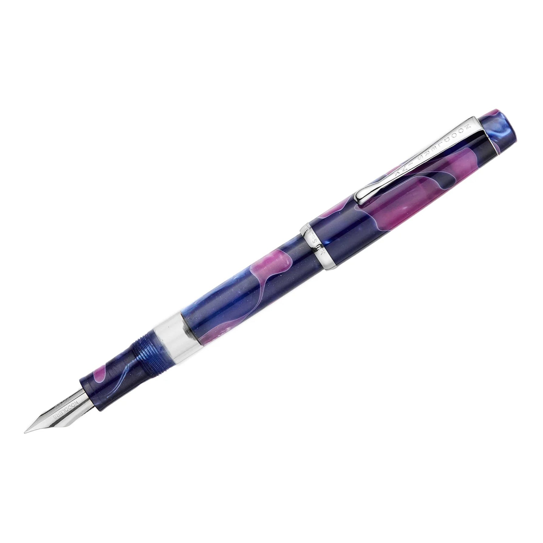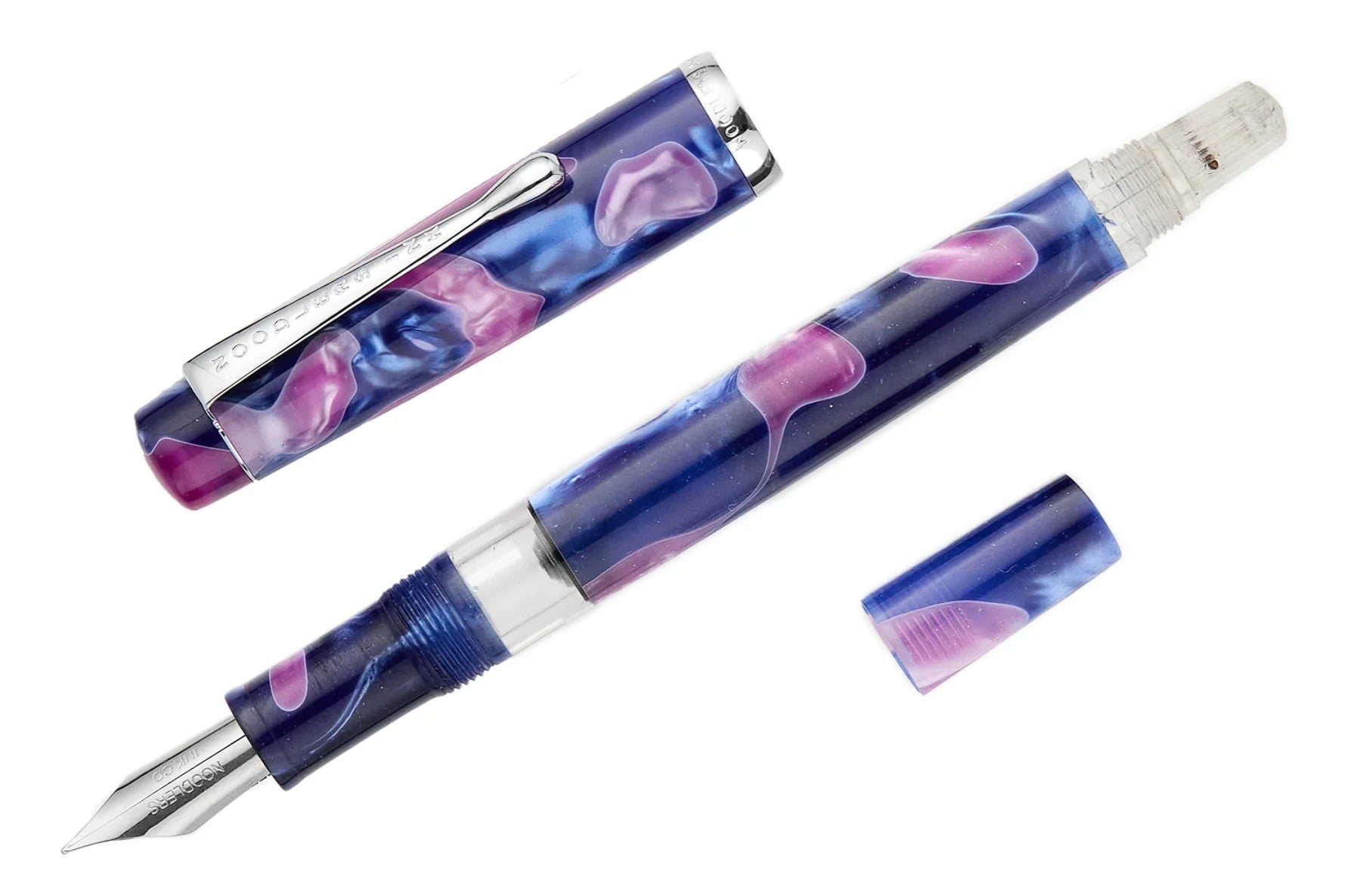The Konrad is a piston-fill fountain pen that is fitted with the Noodler's stainless steel flexible #6 nib. Expect variation in each pen body due to the nature of the material each pattern is unique. The Konrad is made out of acrylic acetate.