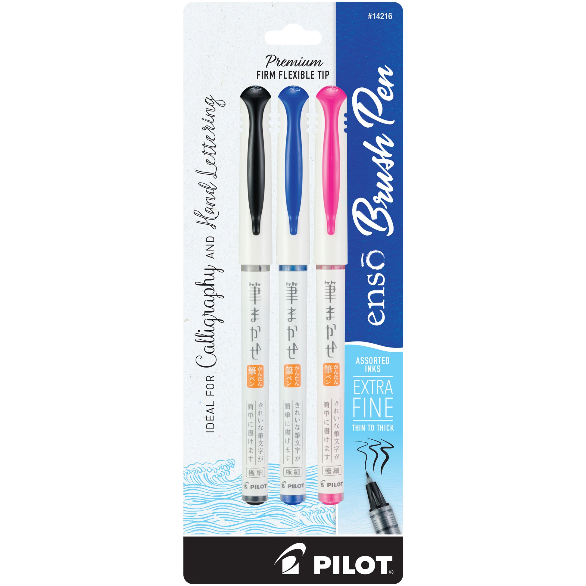 Enso Brush Pen Write in beautifully formed calligraphy and hand lettering with the ease of a marker pen and the benefits of a traditional brush pen. Draw with smooth, sweeping strokes to create flourishes and scaled letterforms. Precise control of the flexible brush tip allows for different line widths. Three tip sizes offer a choice for making smaller to larger scale lettering. For any style or creative expression, Pilot Pen Enso Brush Pens.