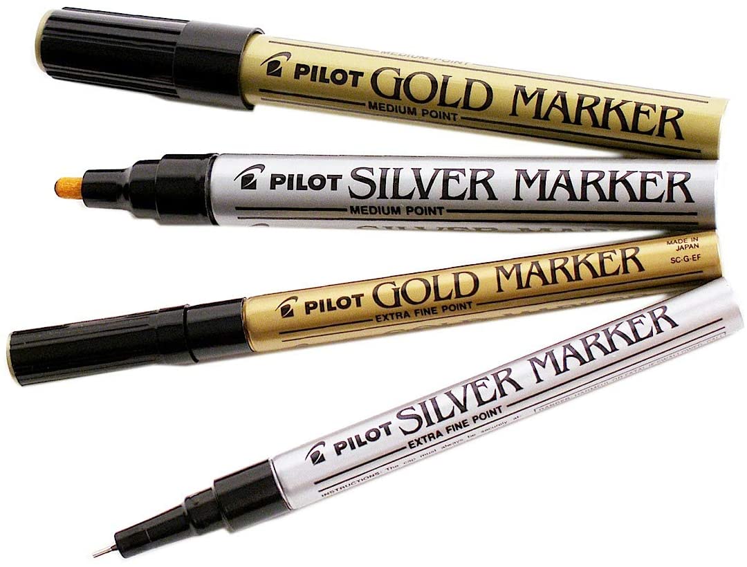 Marcadores o rotuladores, que escriben permanentemente en plateado brillante o dorado reluciente en la mayoría de las superficies no porosas.