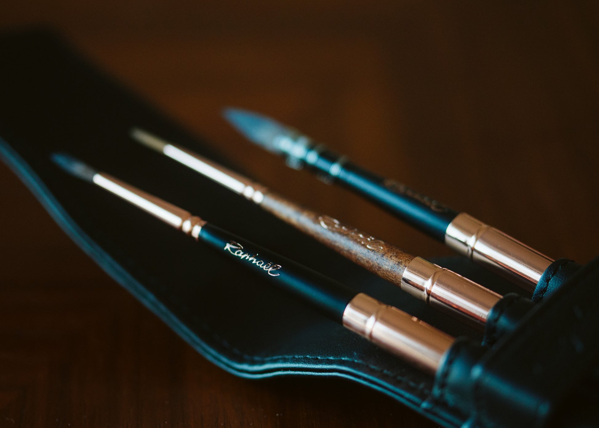 Ideales para llevar en el bolsillo, la mochila o el bolso, estos pinceles compactos para acuarela cuentan con una tapa que no solo protege el cabezal, sino que también se ajusta firmemente al extremo del pincel para alargar el mango. Son una solución portátil y práctica para artistas que trabajan fuera del estudio. Funcionan bien tanto con óleos como con acrílicos y retienen la pintura de forma excelente.