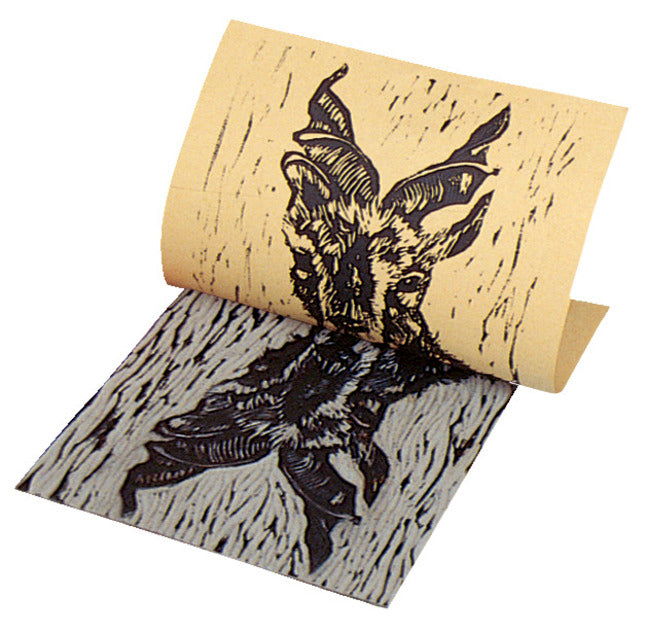 Una superficie de linóleo fina, plana y suave que reproducirá impresiones nítidas y claras sin espacios ni huecos. Tiene un grosor de 1/8" y tiene un respaldo de yute.
