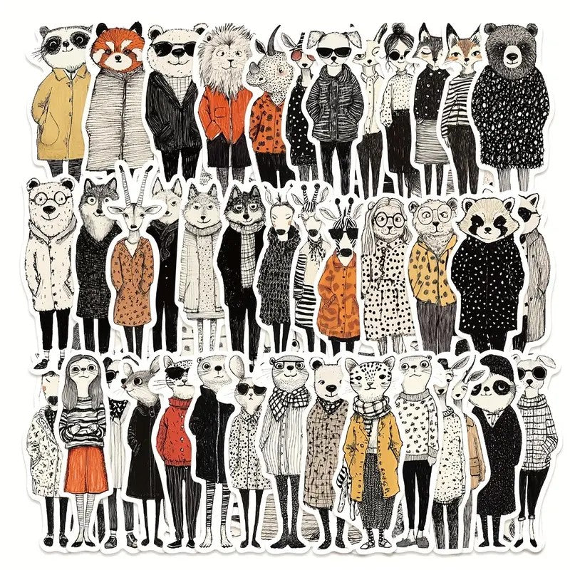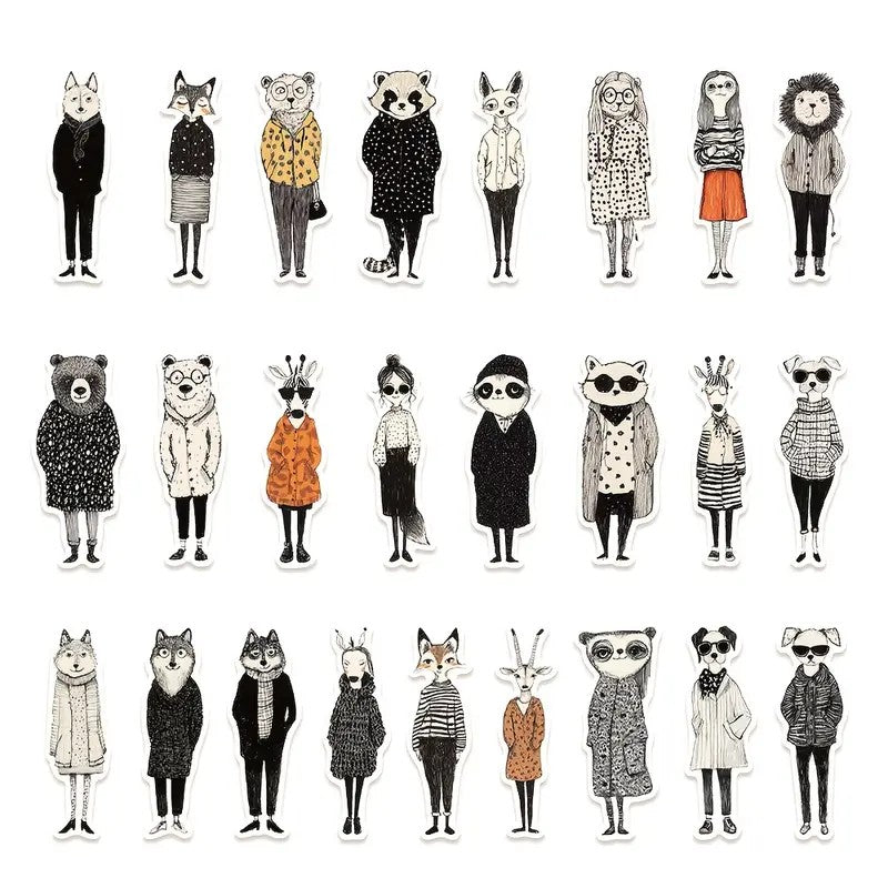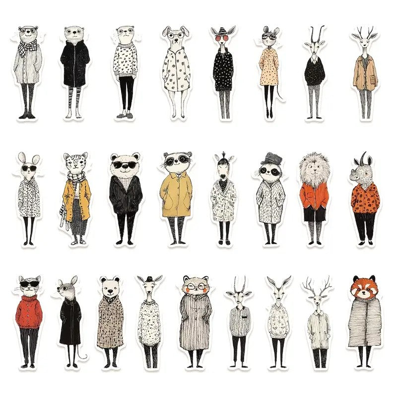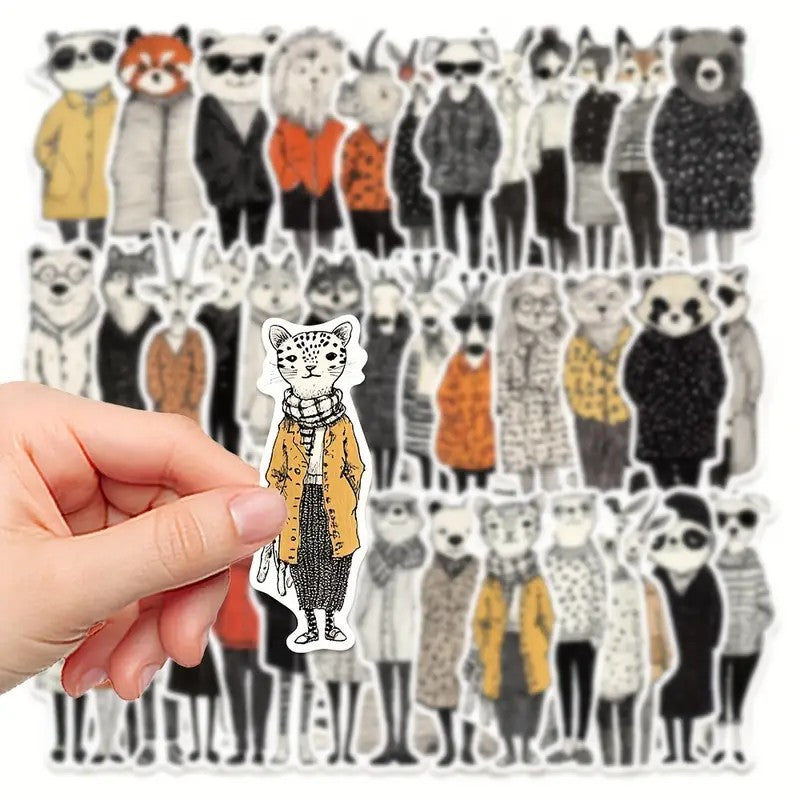 Dale un toque divertido a tus proyectos con estos adorables stickers de animales vestidos. Cada animalito mide aproximadamente 8.7 cm x 3.4 cm, perfectos para decorar cuadernos, cartas, agendas y más. ¡Deja volar tu creatividad!