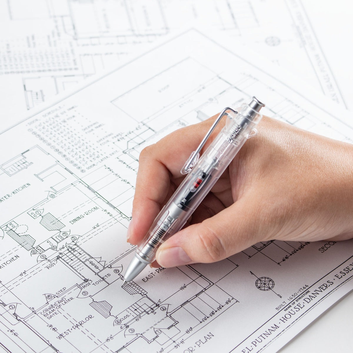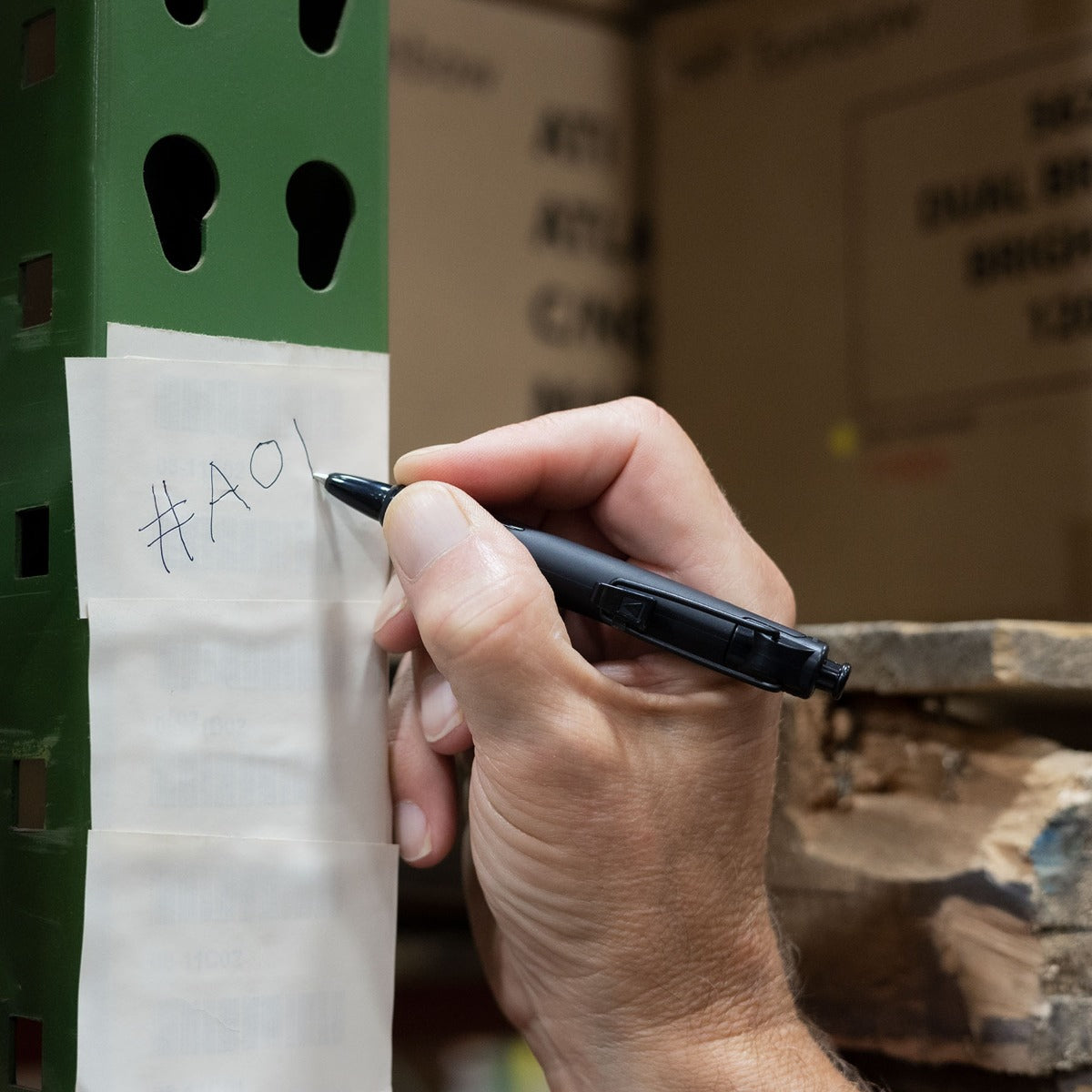 Su tecnología de presión patentada permite escribir en situaciones inusuales, como por encima de la cabeza, en lugares con polvo o sobre papel mojado.