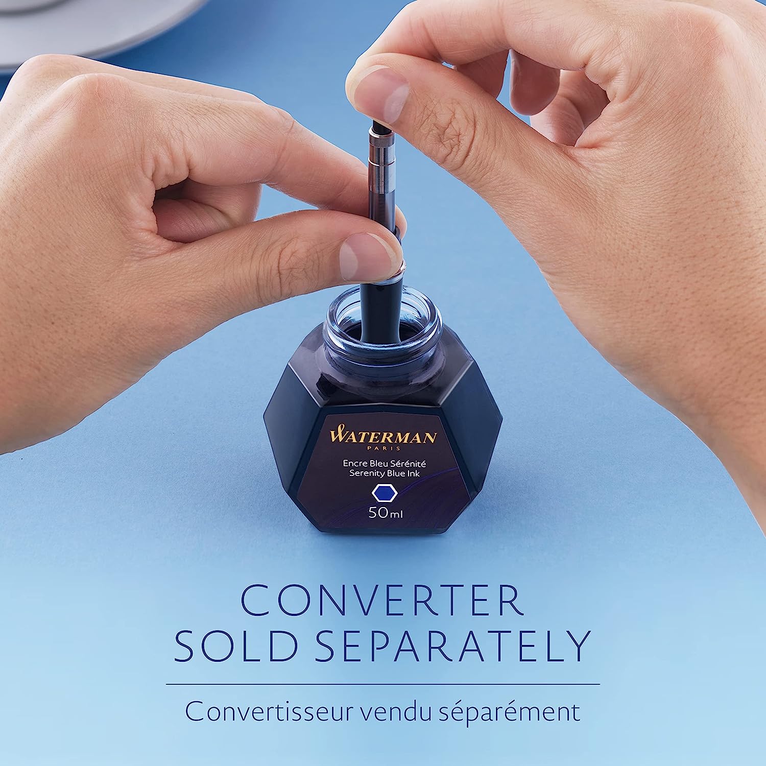 Haz que tu toque especial sea tan único como tu Waterman. Botella de tinta auténtica Waterman Serenity Blue de 50 ml.