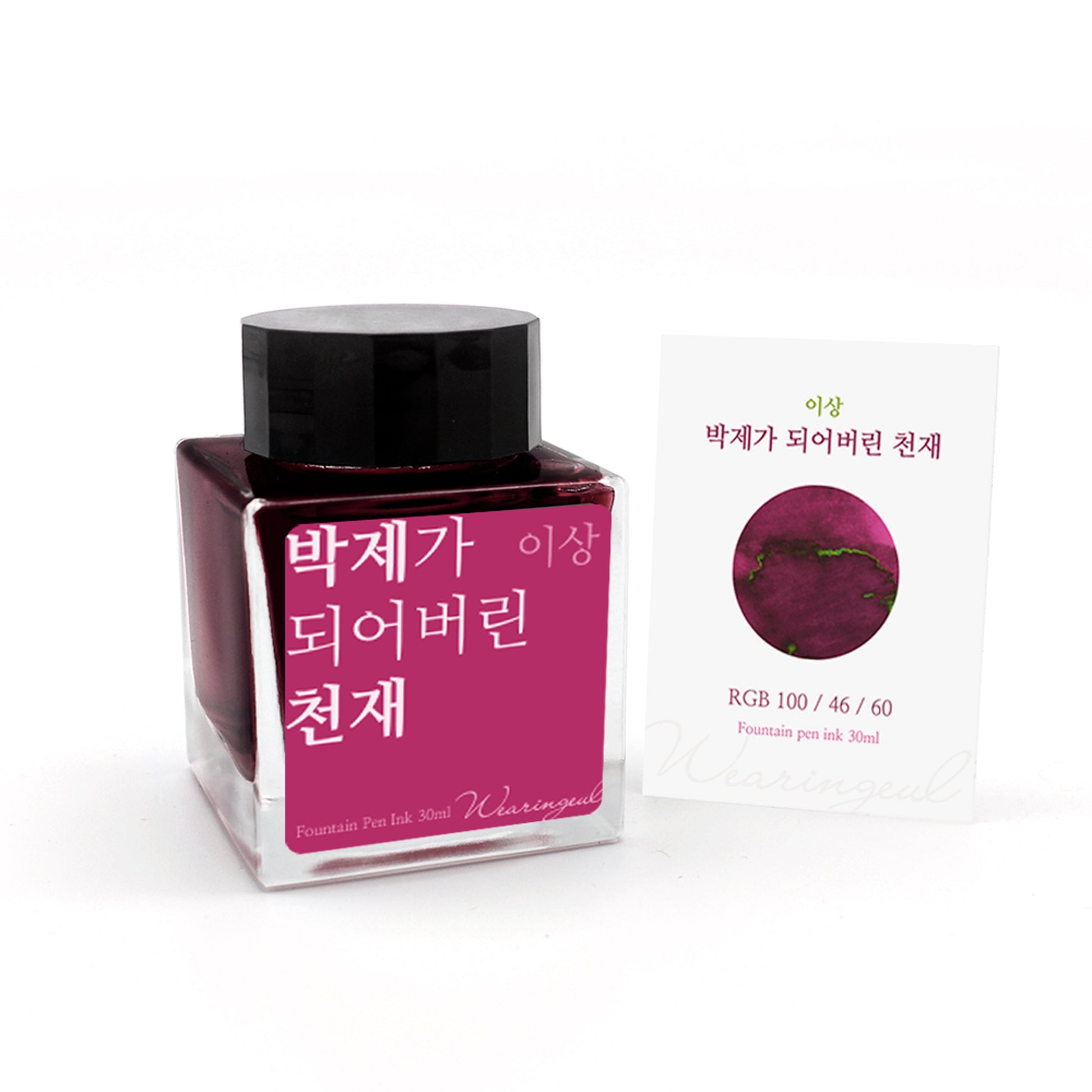 La tinta Wearingeul A Taxidermied Genius es la fusión perfecta de arte y ciencia. Con un tono rosa magenta medio y un sombreado medio, esta tinta refleja vívidamente el estilo literario único de Yi Sang. Con un brillo verdoso suave y una fluidez media, se seca rápidamente en papel Rhodia en 40 segundos, lo que proporciona una experiencia de escritura sin esfuerzo. Fabricada en Corea, esta tinta dará vida a tus pensamientos.