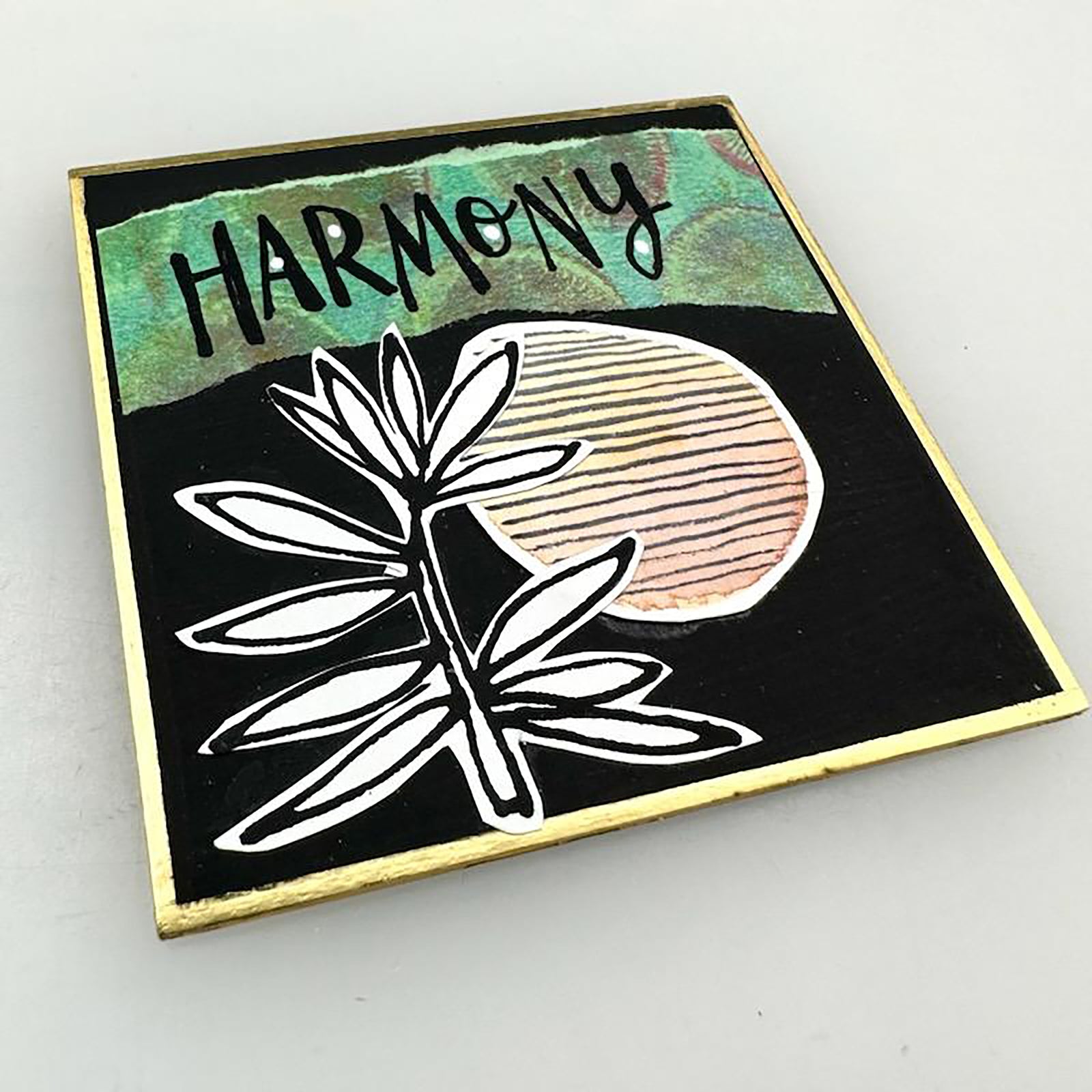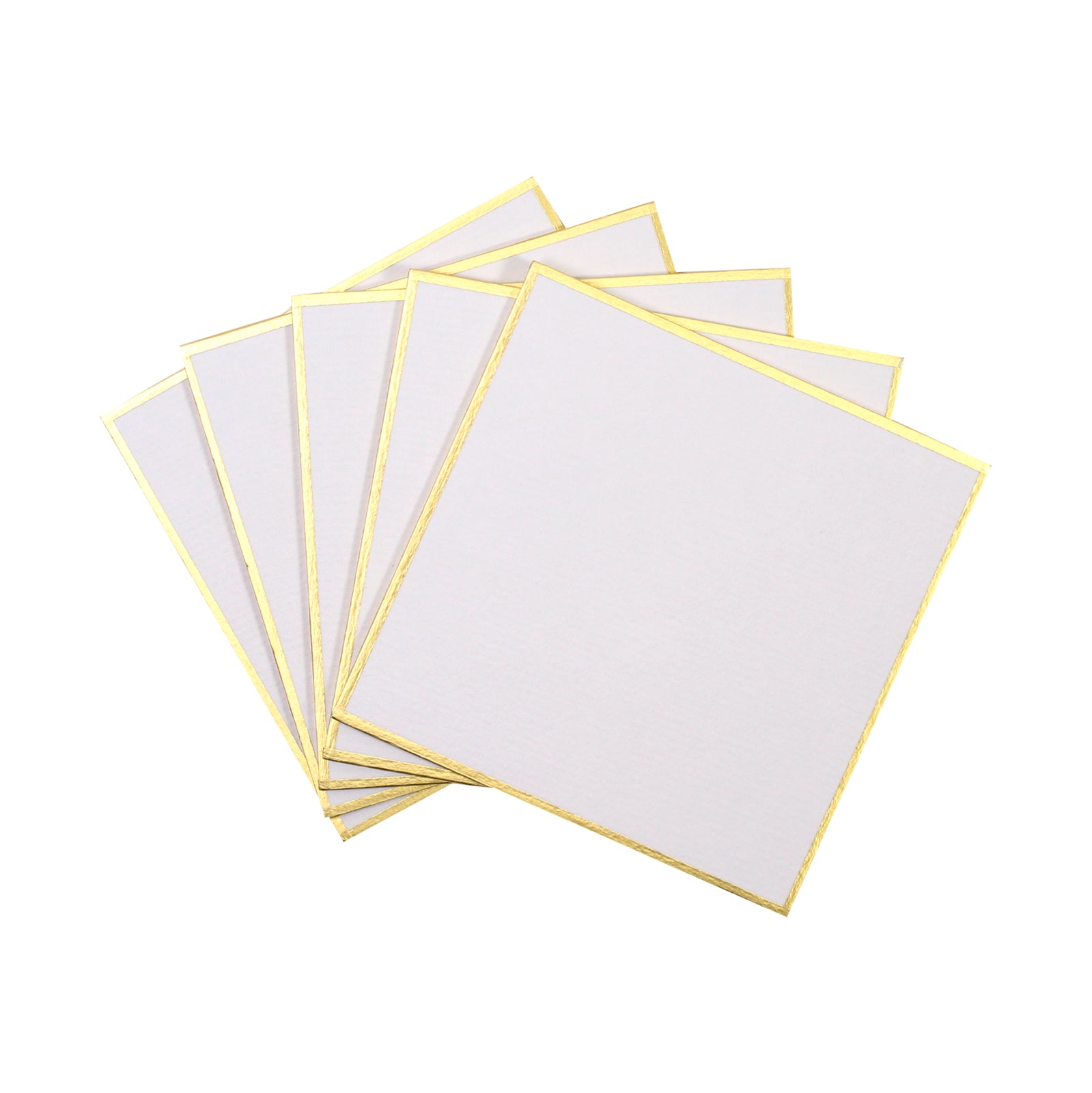 The five piece set includes five 3" x 3" gasen boards. are made from washi papers mounted to a hard board backing and edged with gold foil. It is traditionally used for sumi-e watercolor and haiku painting but can also be used for multimedia projects.