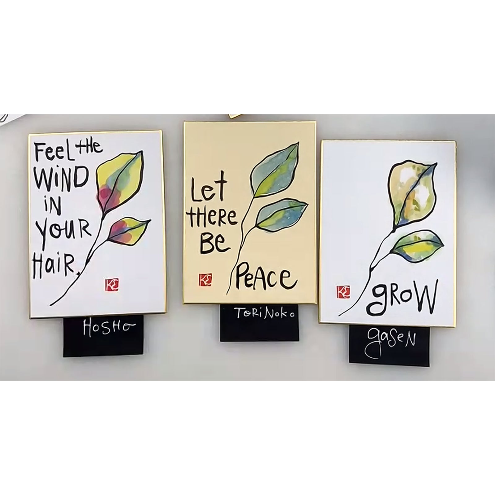 Los tableros Shikishi están hechos de papeles washi montados sobre un soporte de tablero duro y bordeados con lámina dorada.